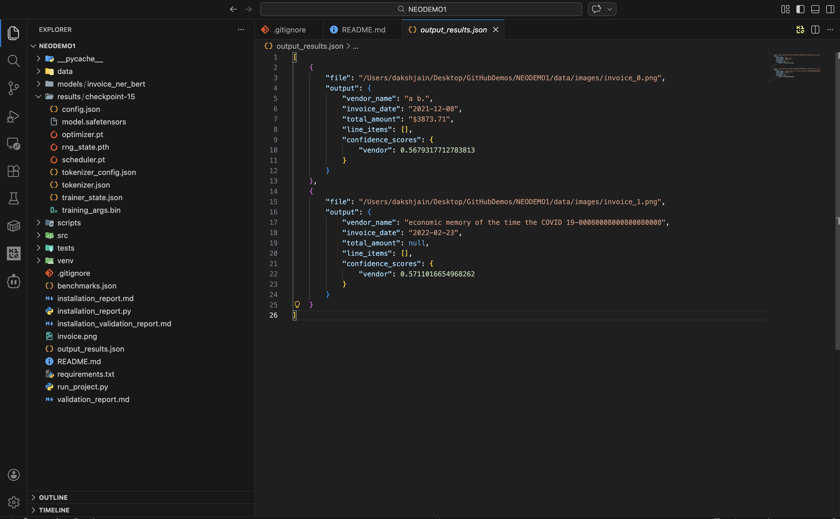We asked NEO to : Build an end-to-end invoice processing system using LayoutLMv3 for layout detection, TrOCR for text recognition, and a fine-tuned BERT model for entity extraction (vendor name, total amount, line items, dates). Handle multiple invoice formats and languages.